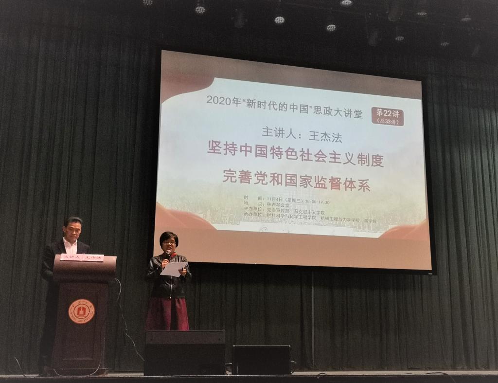 11月4日,校纪委书记王杰法在林杏琴会堂为机械工程与力学学院、每日大赛