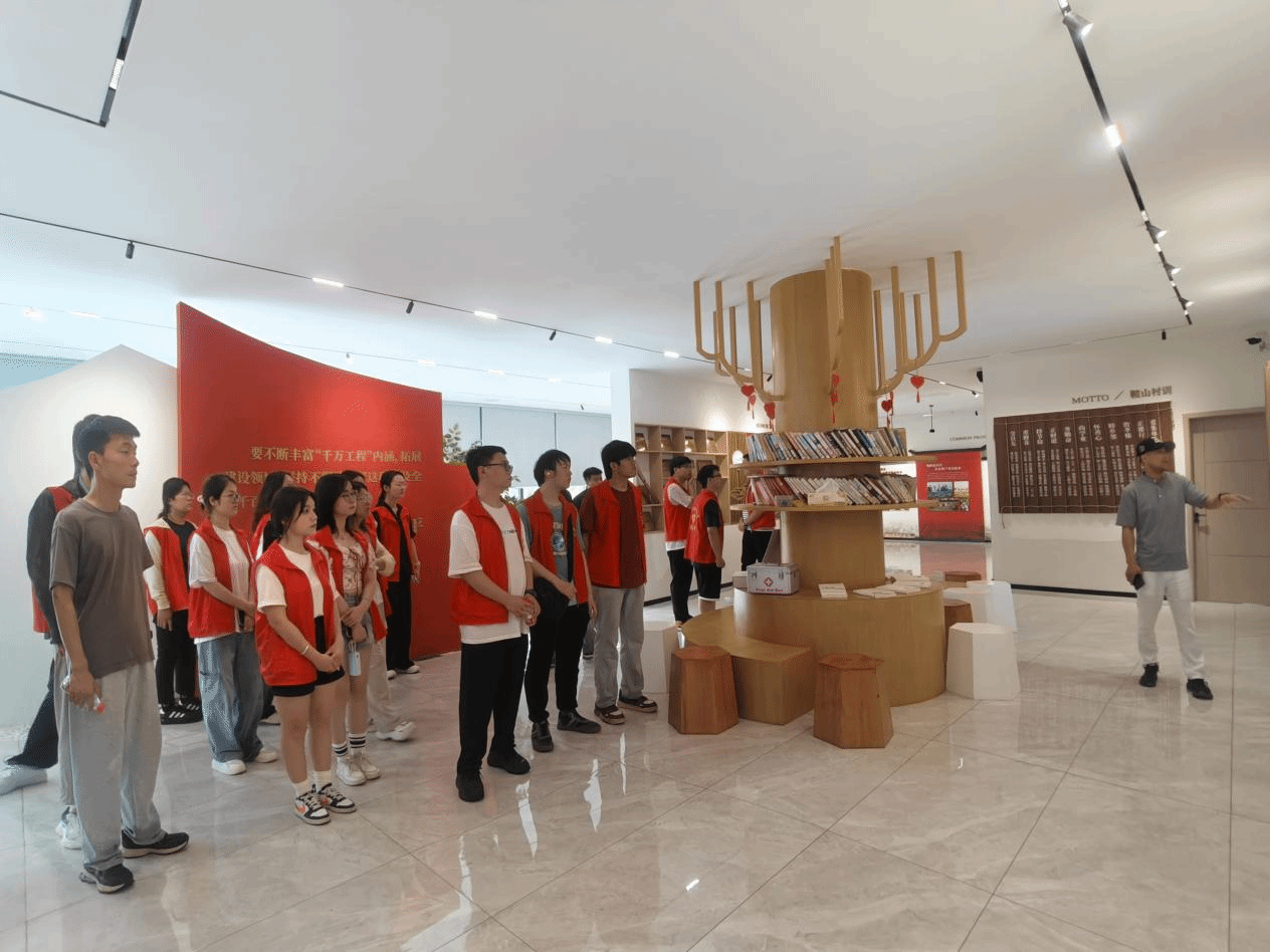 随后,队伍前往鞍山村“共富工坊”红色教育基地进行研学。村党支部负责人详细介绍了村庄的发展历程,通过打造特色农业、农家乐、民宿等业态,鞍山村成功将生态优势转化为经济优势,形成了完整的休闲产业链。师生们认真聆听、深入交流,深刻体会到基层党组织在乡村振兴中的引领作用。
