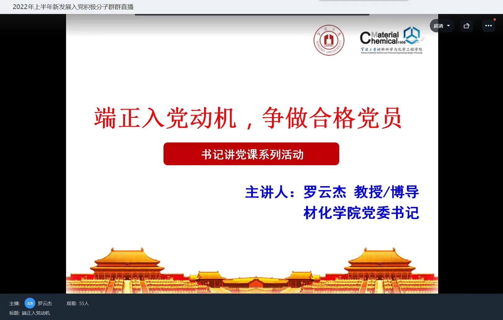 党委书记、分党校校长罗云杰为新确立入党积极分子带来党课——《端正入党动机,争做合格党员》。
