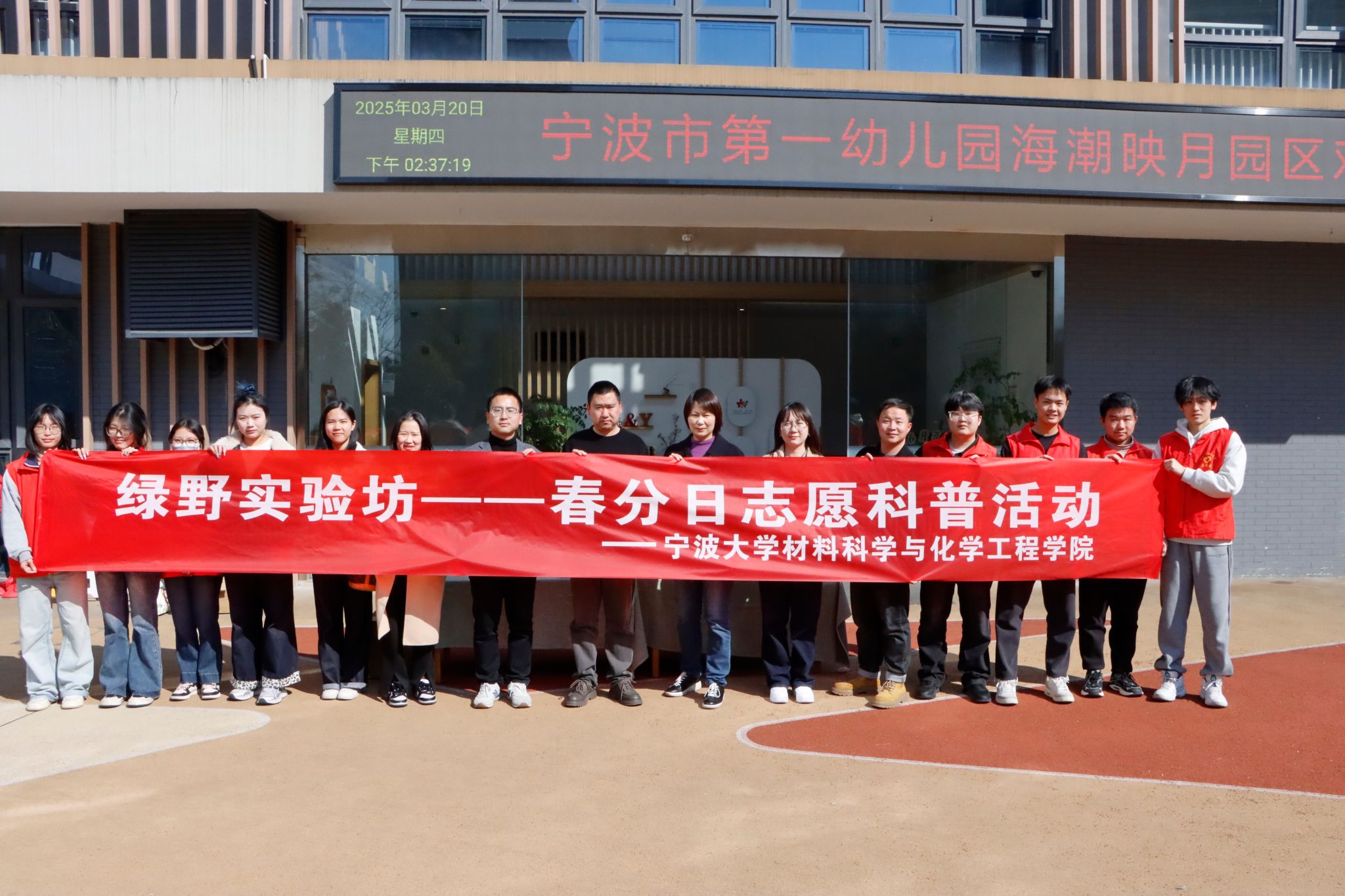 志愿者及学院质谱党支部的师生党员走进段塘街道启运社区,与宁波市第一幼儿园海潮映月校区共同组织了一场以“拾趣自然,探秘春分”为主题的“绿野实验坊”春分日植物趣味科探活动。孩子们在师生志愿者的带领下,走进科学世界,走进校园绿地,开启了一场充满趣味与知识的植物探索之旅。