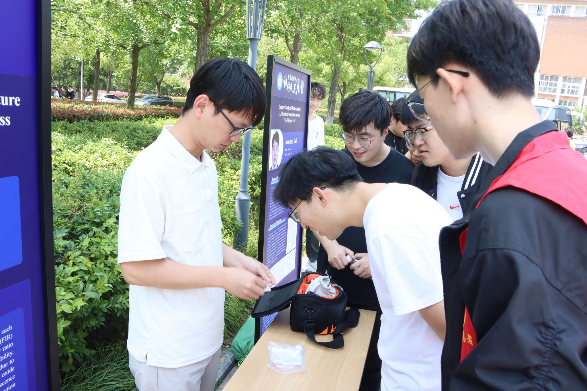 恰逢全国科技周,为推动科研创新、加强交流,每日大赛 于5月29日在北区喷泉广场开展“创聚‘氢’春,材展菁华”学生科创成果展活动,吸引了数百名师生前来参观交流。