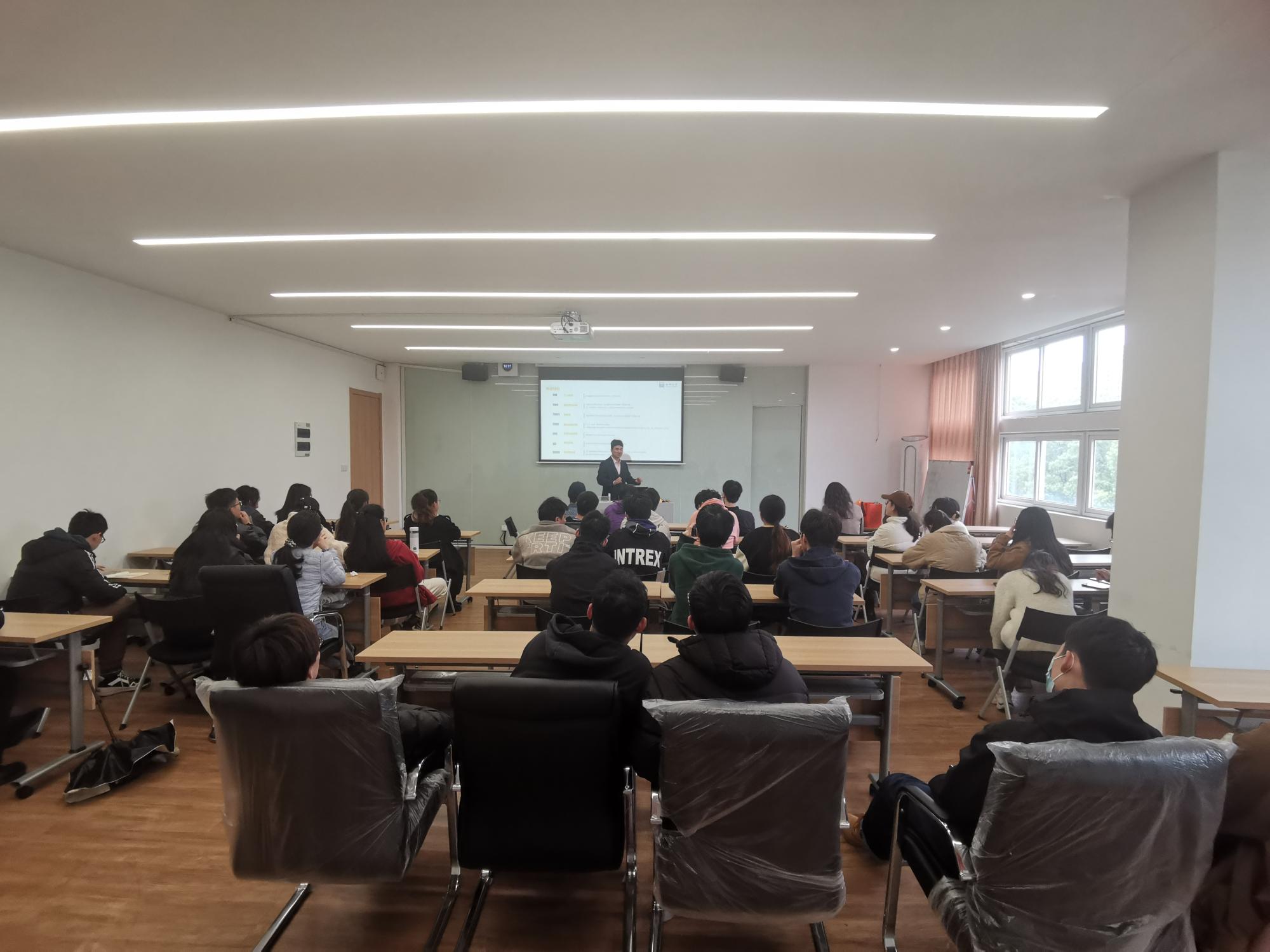 座谈会结束后,张国昌书记在学院1225教室面向2023届和2024届毕业生开展了一场宣讲会,全面介绍西湖大学理学院博士生培养的具体模式和软硬件条件,以夏令营等形式向同学们发出了邀请。