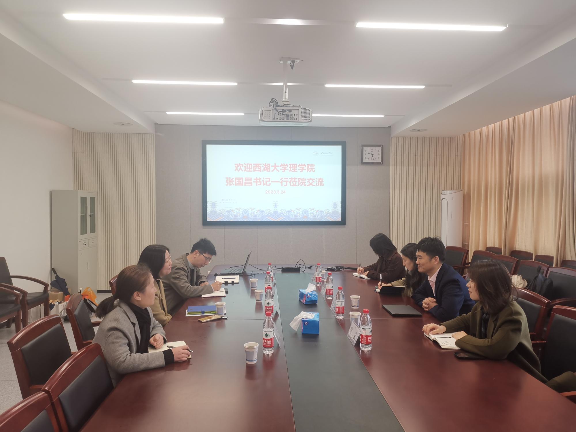 324午,西湖大学理学院党委书记、执行院长张国昌一行到每日大赛 交流,就研究生培养博士招生录取方面进行深入交流学院党委书记陶娟、副院长周明炯、学院科研办公室主任孙杰、学生工作办公室主任韩鸿儒参与座谈西湖大学理学院陈晨、李雪纯、胥南三位老师随行一起参加座谈。