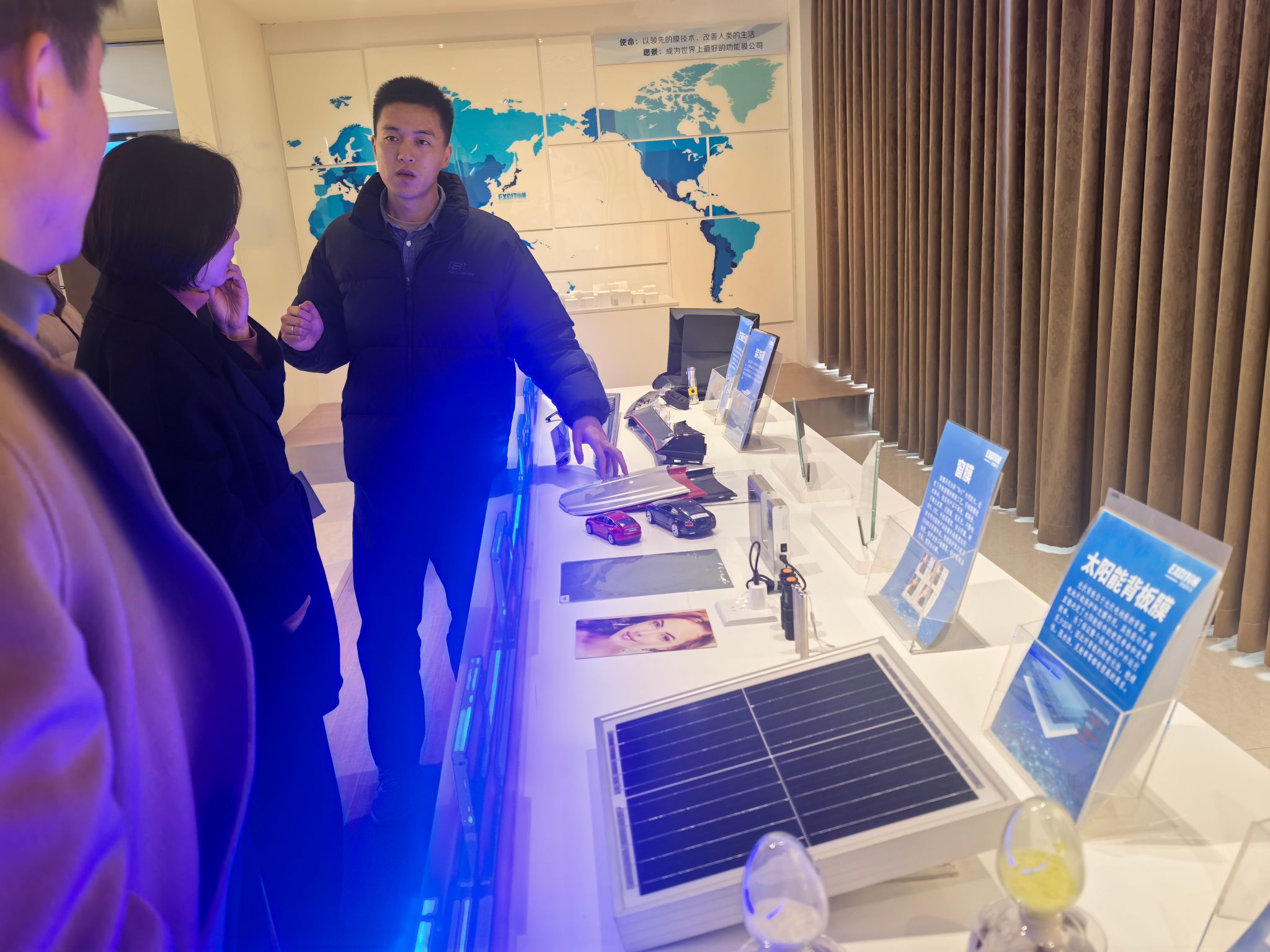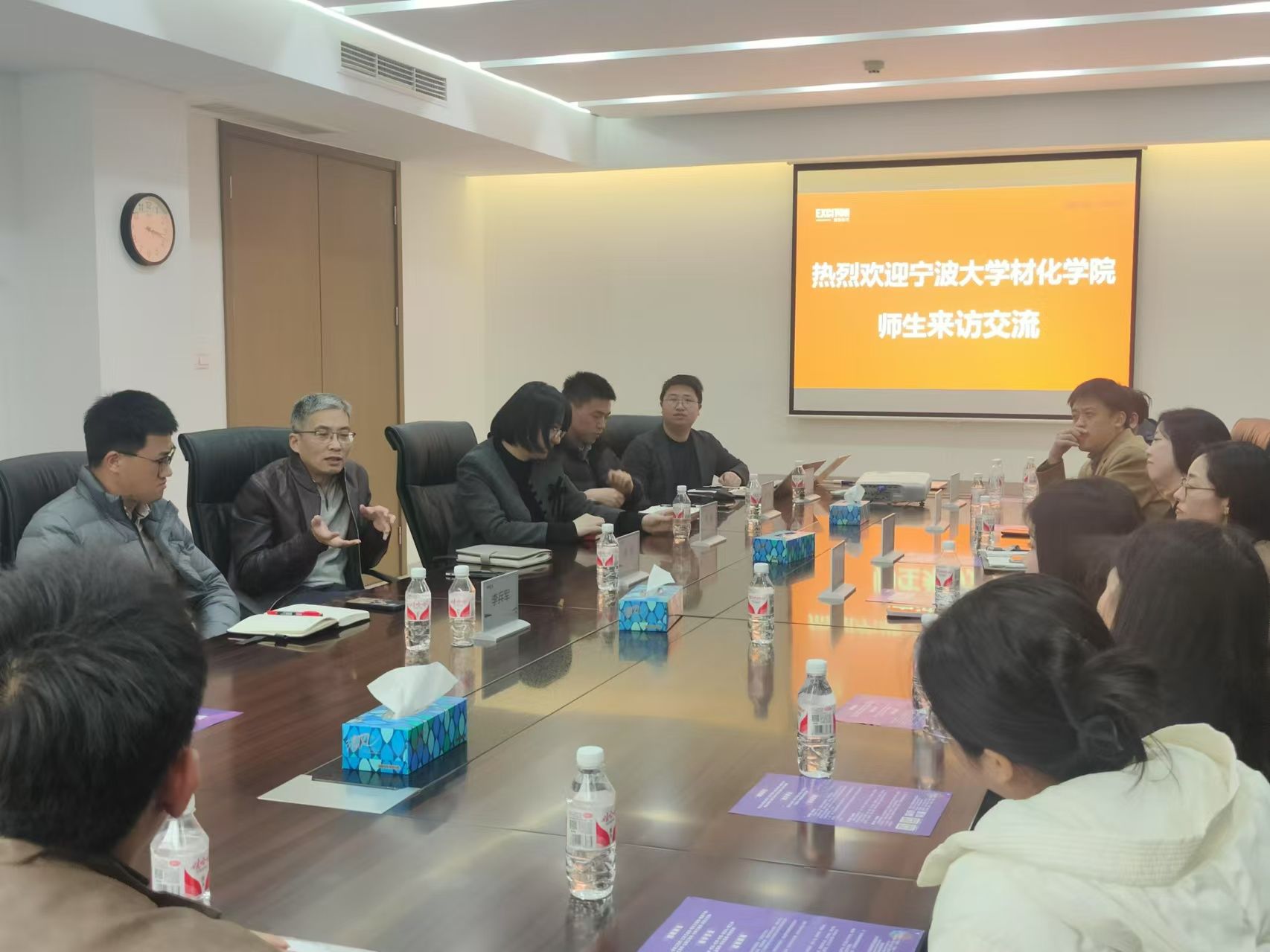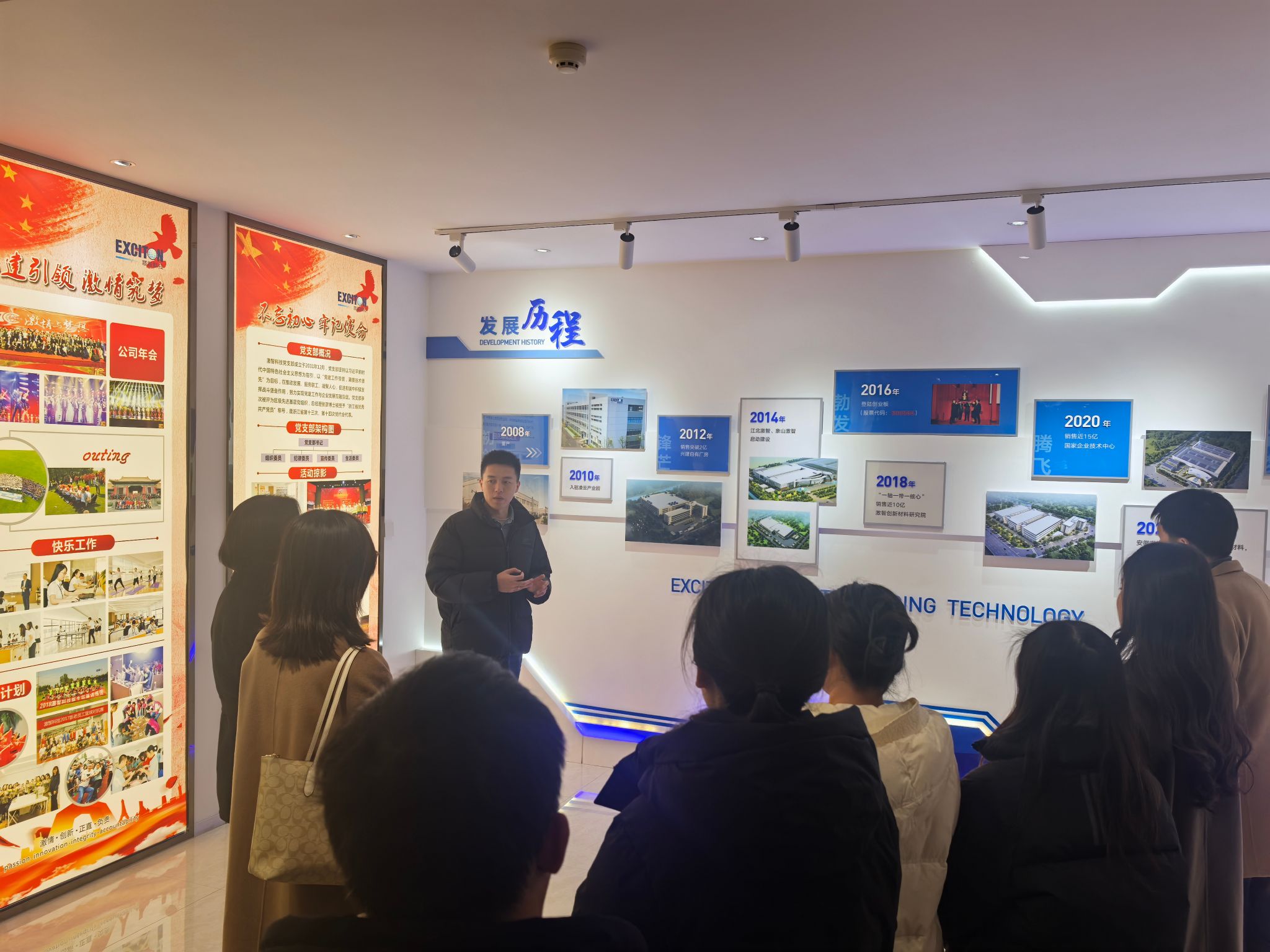 一行参观了公司展厅,叶志鹏校友详细介绍了公司的发展历程、产品种类、研发流程等情况。随后,校企双方就产学研合作、党建共建等内容和同学们关注的职业发展路径、公司人才培养体系、职业发展前景等问题进行了深入的座谈交流。