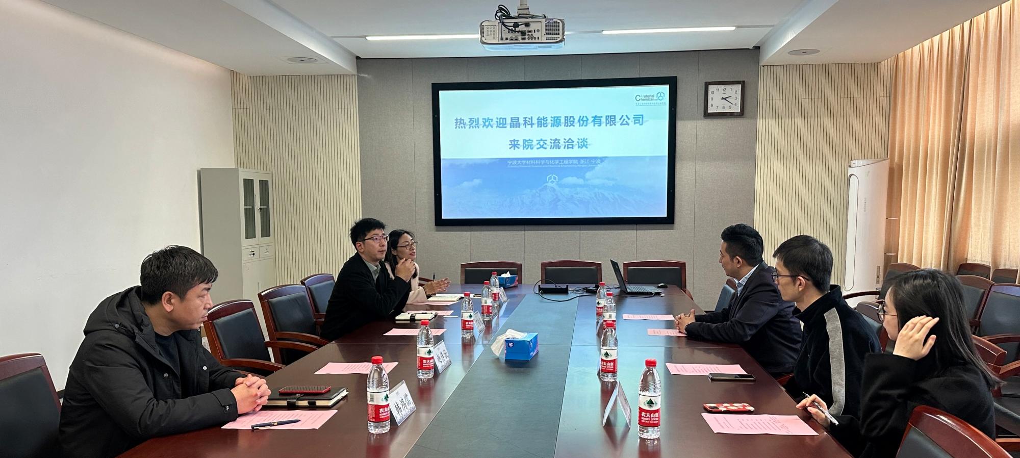 会上,尹慧代表学院对李孟珂一行的到访表示热烈欢迎,并简要介绍学院情况,希望能与企业在学生就业创业、奖学金捐赠、职业生涯规划等多方面长期深入合作,点面结合,协同育人,实现互惠共赢,共同发展。李孟珂一行介绍了晶科能源有限公司的发展历程、产品模式、招聘需求、未来规划以及合作期望。希望双方进行全方位深度合作,资源共享、优势互补,构建校企协同育人长效机制。周明炯表示希望以本次洽谈会为起点,搭建校企科研合作平台,拓宽合作模式,实现企业需求与学院培养无缝对接,形成导师、学生、企业三方利益良性循环长效机制,为企业输送更多优秀人才,帮助企业攻坚克难。韩鸿儒介绍了我院毕业生就业情况和往届生工作情况,希望能打造双方互惠共赢的学生成长计划。