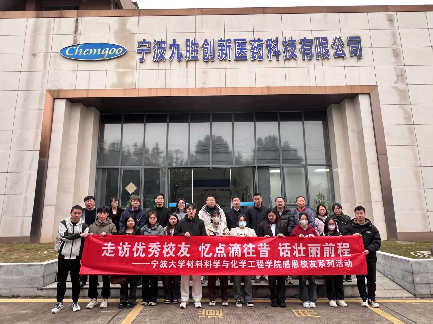 领导班子一行走进宁波九胜创新医药科技有限公司,走访看望优秀校友,搭建校企合作平台。公司相关负责人热情接待了学院师生一行。公司高级研发主管、学院2015届优秀校友徐林峰作为公司优秀校友代表与学院来访师生代表会面交流,分享学习工作心得,共同探讨各项校企合作事宜。