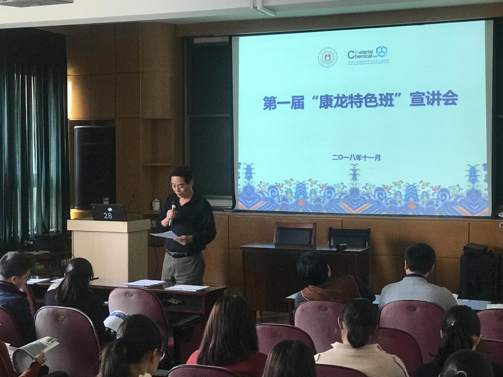 召开第一届“康龙特色班”宣讲会,17级化学专业全体本科生参加。