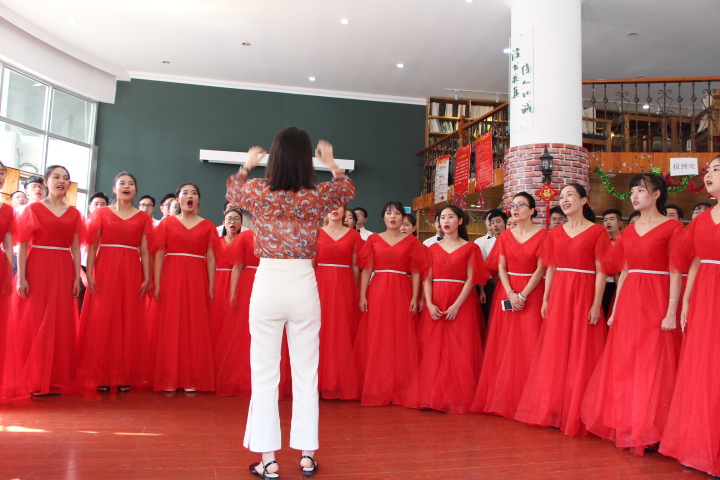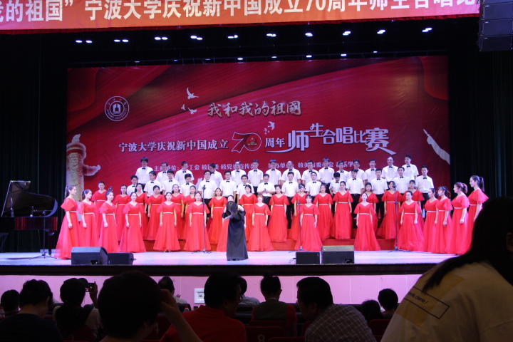 师生团结向上的精神风貌和对祖国的一片赤诚之情,并最终取得了较好的成绩。全体领导班子从繁忙的行政事务中安排时间排练;许多老师从繁重的教学科研中抽出时间进行排练;参演同学更是利用课余全情投入排练;还有指挥和伴奏耐心的指导等,音乐抒发了我们对祖国的感情也让师生更贴心。