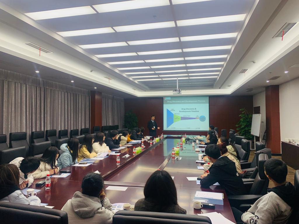 “康龙特色班”学生在学院副书记朱燕和辅导员杜巧蓓的带领下,到校友企业康龙化成(北京)新药技术有限公司宁波公司参观学习。康龙化成(北京)新药技术有限公司药物化学副总裁付建民博士、董事长秘书李静,宁波园区运营执行总监王有龙及实验室相关负责人全程陪同。