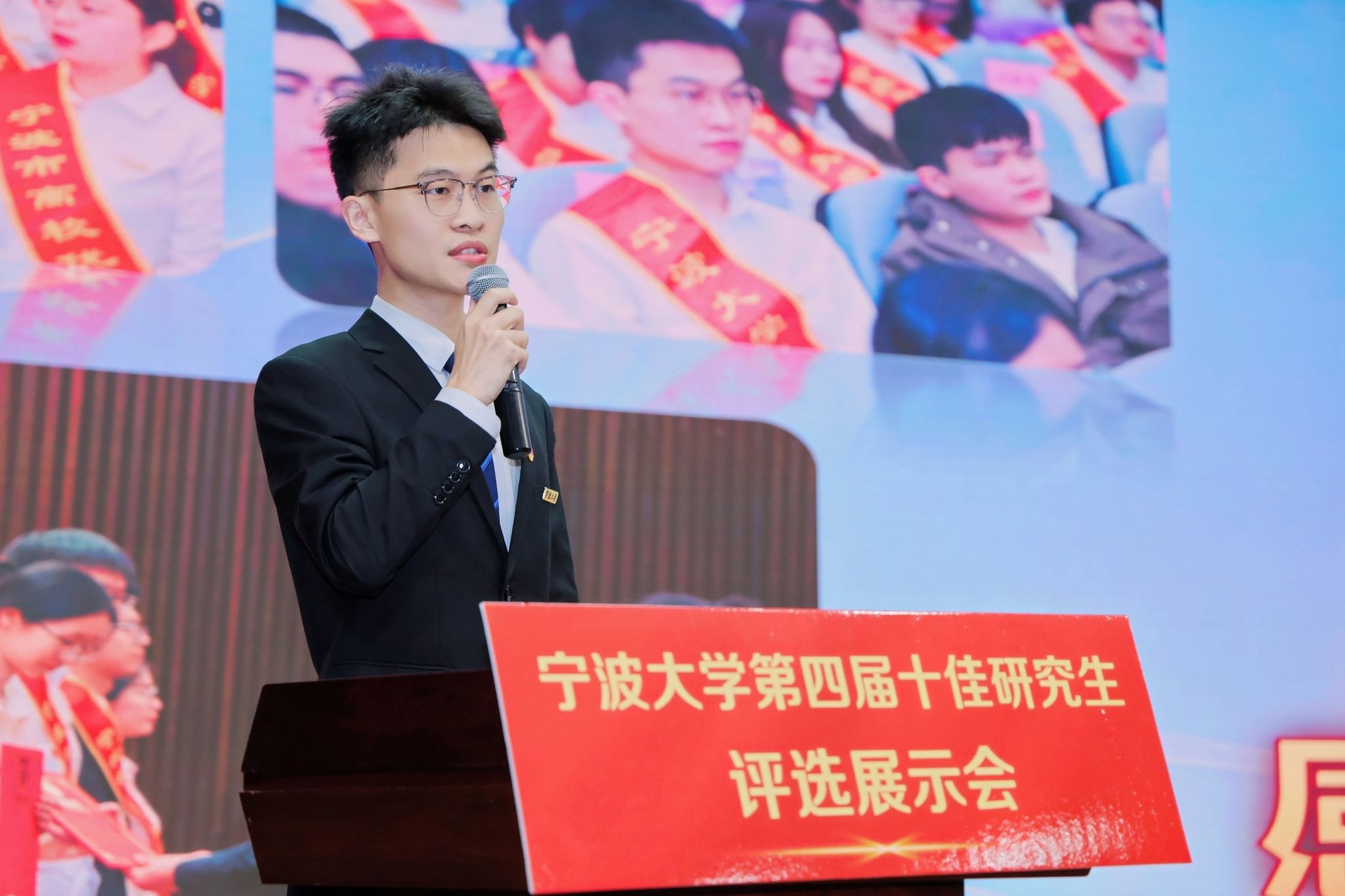 第四届“十佳研究生”评选展示会在真诚图书馆隆重举行。经过激烈角逐,我院2022级材料与化工专业研究生邢超伟脱颖而出,以总评第一的成绩成功获评每日大赛