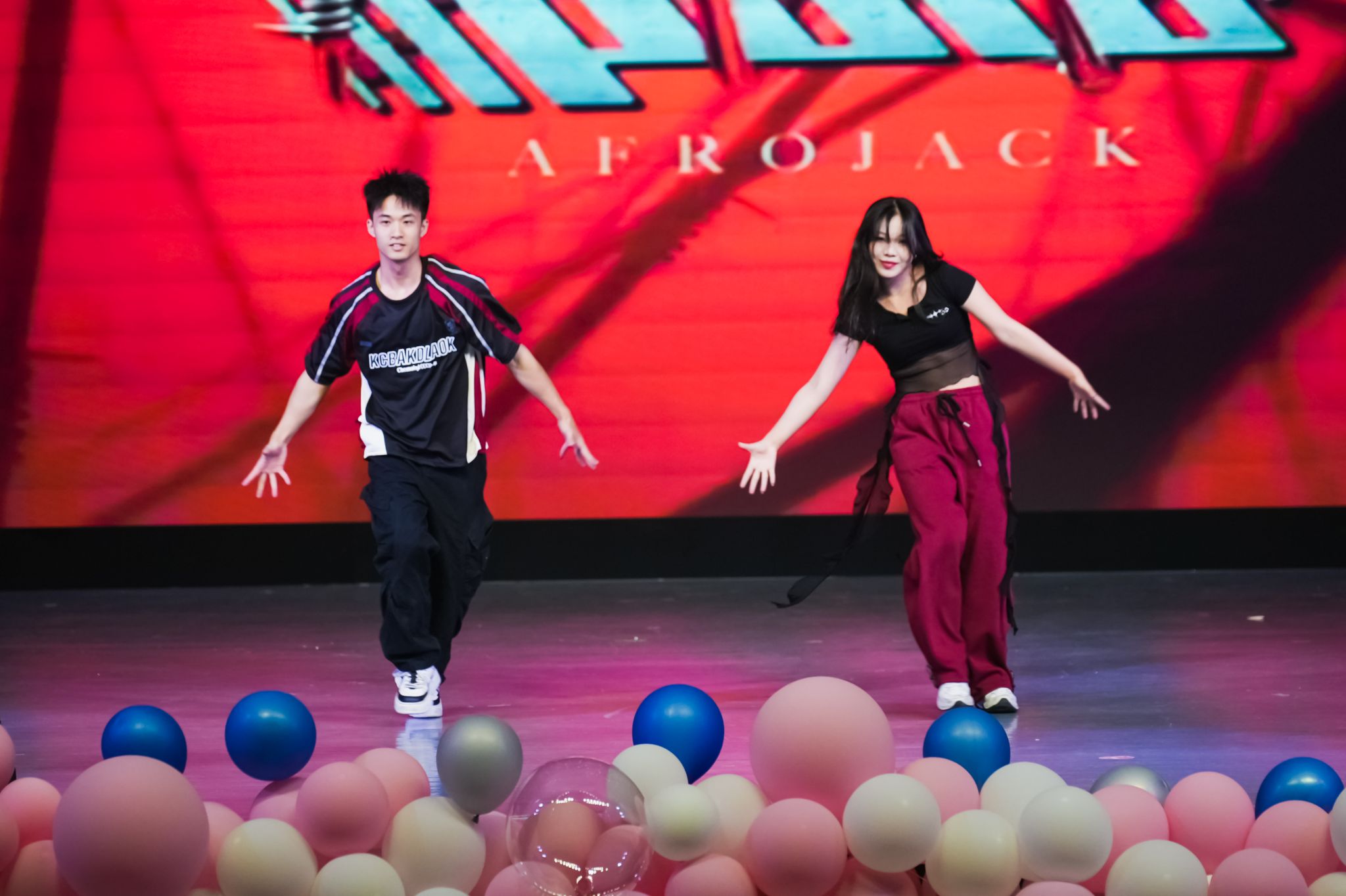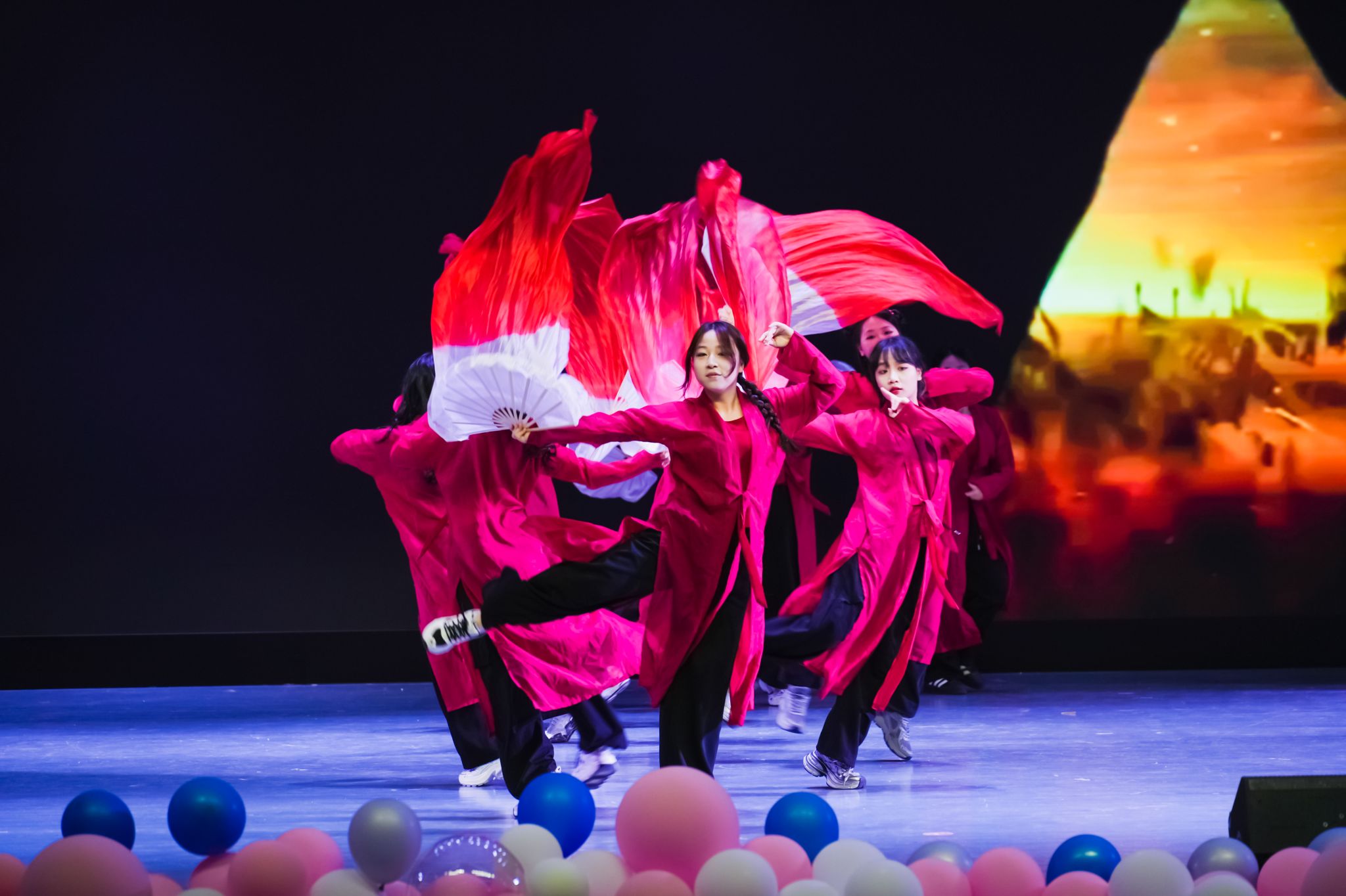 《东方绮遇》借三支舞蹈,绘就中西方文化交融的流动画卷。唢呐声里,《碧苍战歌》中绸扇似赤焰翻涌,舞者以刚劲之姿演绎东方侠骨。余音散尽,《Boom Boom Pow》电子乐携街舞锐气袭来,锁舞如齿轮咬合,地板动作似电流四射。两股文明激烈碰撞,却于即兴共舞中奇妙交融。绸扇拂过街舞律动轨迹,《中国话》舞者踏嘻哈节拍,在电子乐中重塑传统韵律。街舞元素与东方美学交织,以舞为筏,载着传统基因溯游至潮流彼岸,织就文明共生的璀璨经纬。