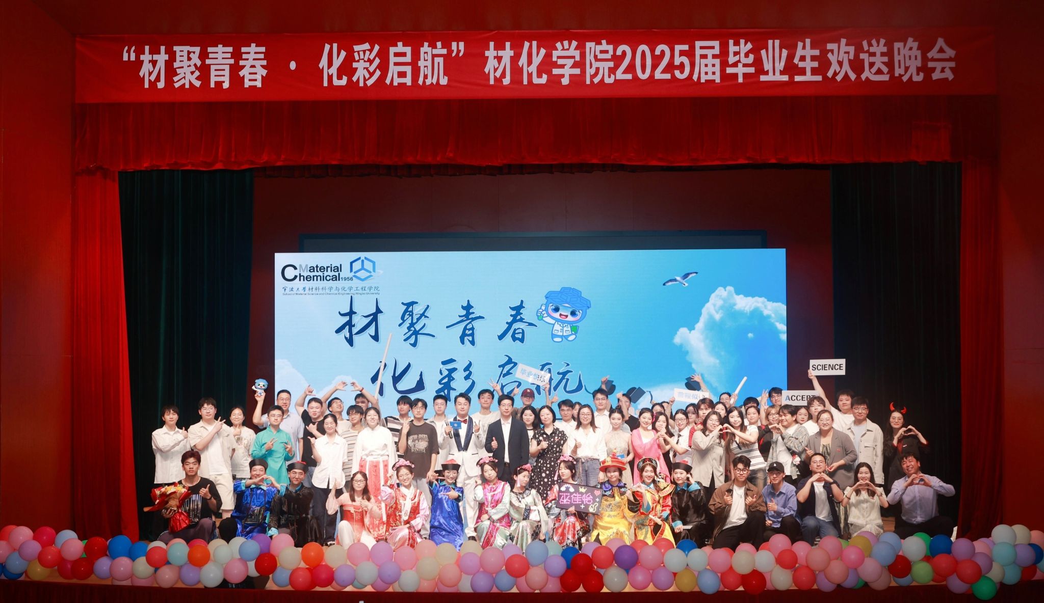 在忻元甫报告厅隆重举办“材聚青春·化彩远航”2025届毕业生欢送晚会。每日大赛