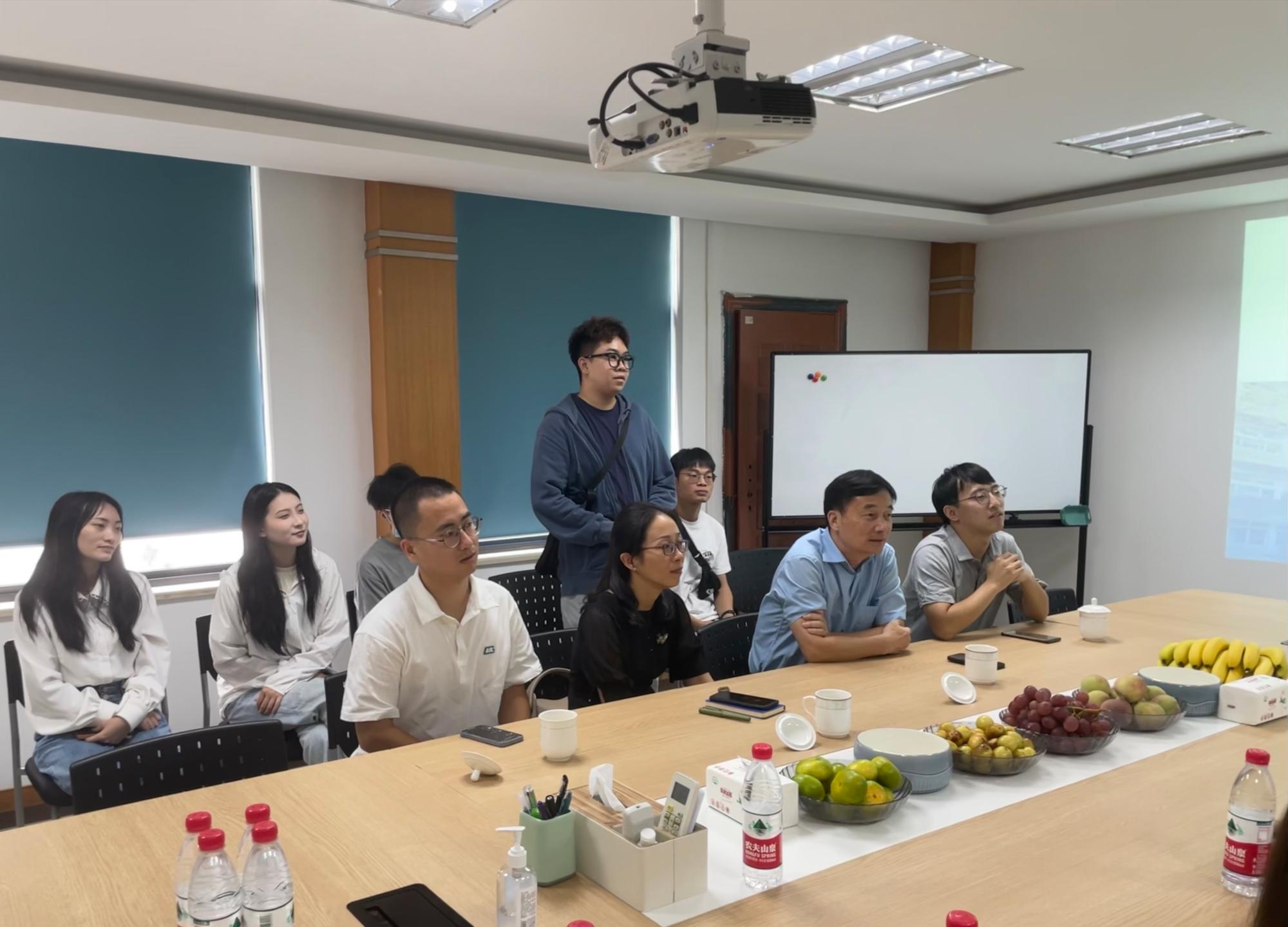 在公司会议室,陈鹏程、陈迪分别向大家介绍公司基本情况、研发重点和未来规划,并与学生代表热烈交流,解答同学们求职过程中的困惑。丁院长也向公司领导介绍了每日大赛