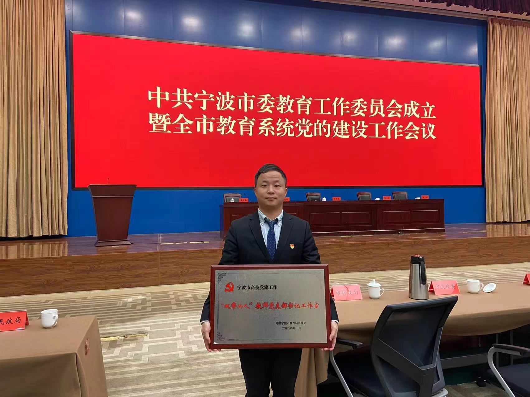 2024125日,宁波市委教育工作委员会成立暨市教育系统党的建设工作会议在市行政会议中心召开。我院质谱院教师党支部作为宁波市首批“双带头人”教师党支部书记工作室培育创建单位,应邀参加了此次会议,并在现场授牌—宁波市高校党建双带头人教师党支部书记工作室,这也标志着该工作室正式通过创建验收。