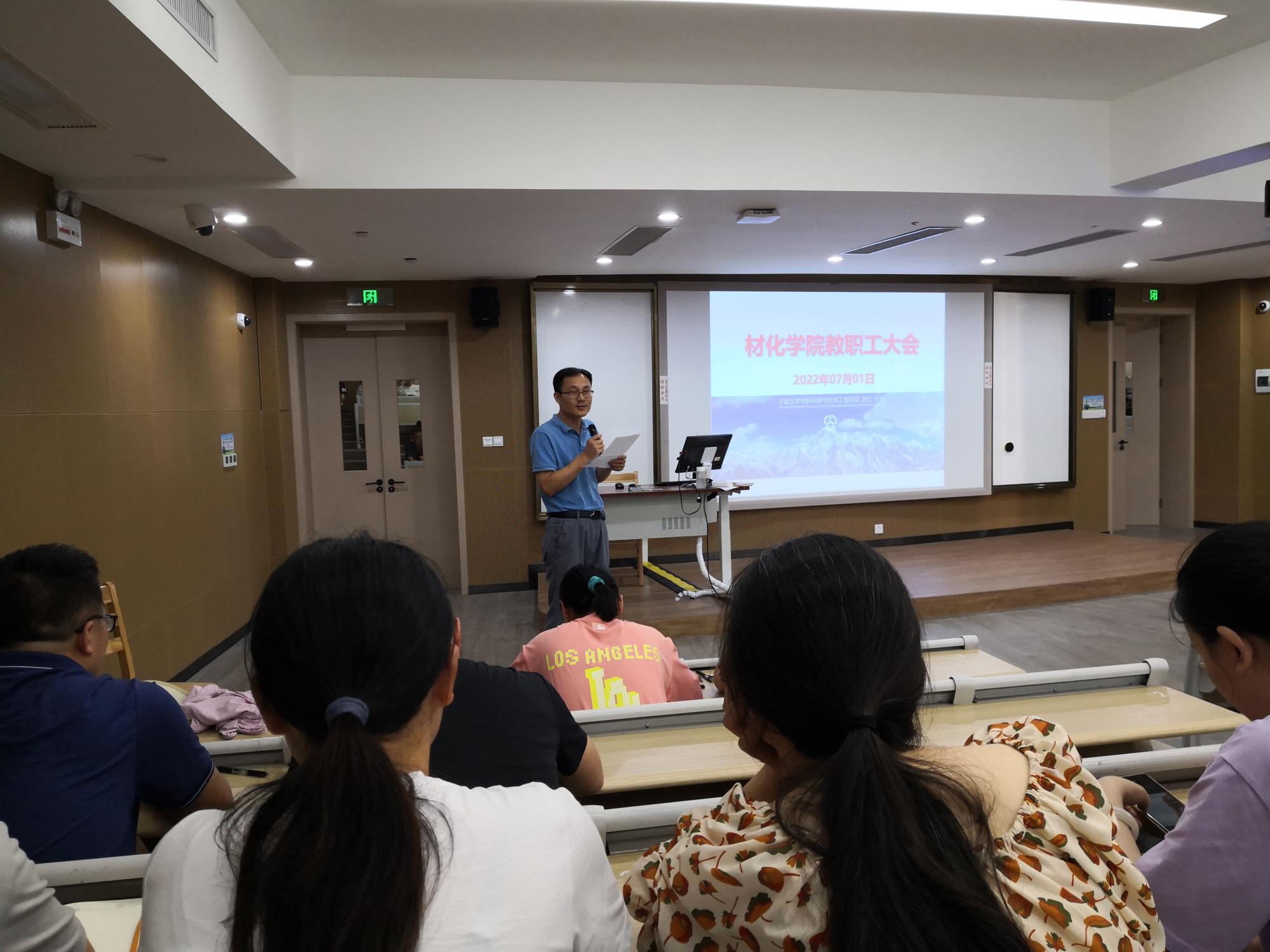 首先,学院特聘院长丁传凡作大会开场,就学院本学期各项工作情况进行了详细通报。随后,学院副院长韩磊、孙巍,学院党委副书记朱燕分别就各自分管的领域做了详细的工作情况通报,并就接下来的工作做了全面的部署;创安办副主任龙能兵对实验室在建项目:实验室安全管理智慧平台做详细讲解说明,强调各位老师在暑假期间务必要提高安全意识,筑牢安全底线。