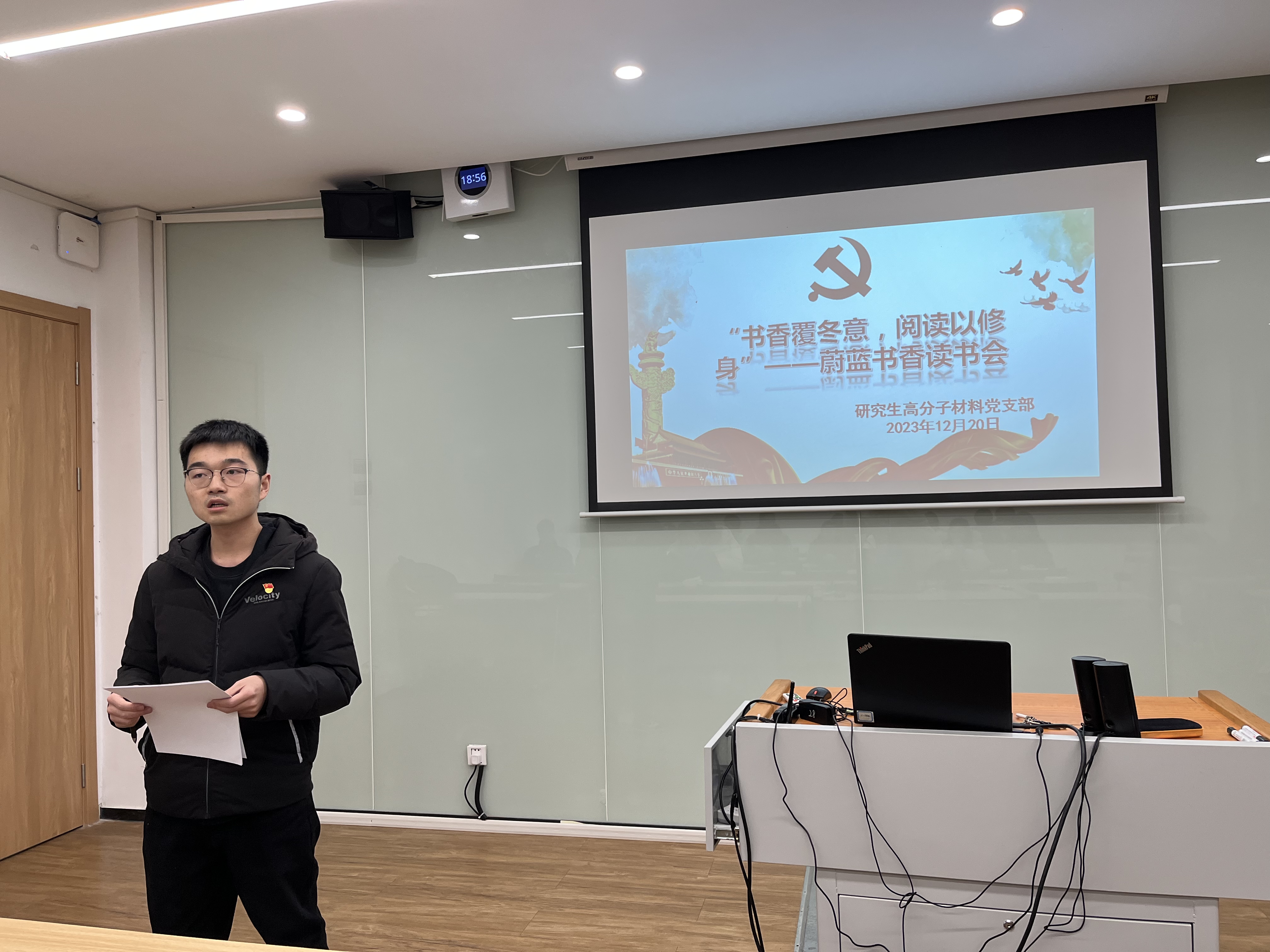 为深入学习习近平新时代中国特色社会主义思想,坚持学、思、用贯通,知、信、行统一”,1220日,每日大赛 组织开展主题为“书香覆冬意,阅读以修身”蔚蓝书香读书会活动。本次活动由每日大赛 研究生高分子材料党支部承办,辅导员汤金燕老师、研究生高分子材料党支部全体党员参加。此次读书会阅读书目是《习近平新时代中国特色社会主义思想专题摘编》