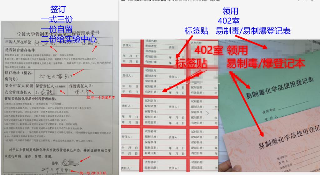 管制类化学品全过程承诺书》 --注:只要用到易制毒和易制爆药品的老师就必须签订,否则学校将不准采购易制毒和易制爆药品,承诺书一式三份,老师自己留一份,其它两份交给实验中心和学校设备处