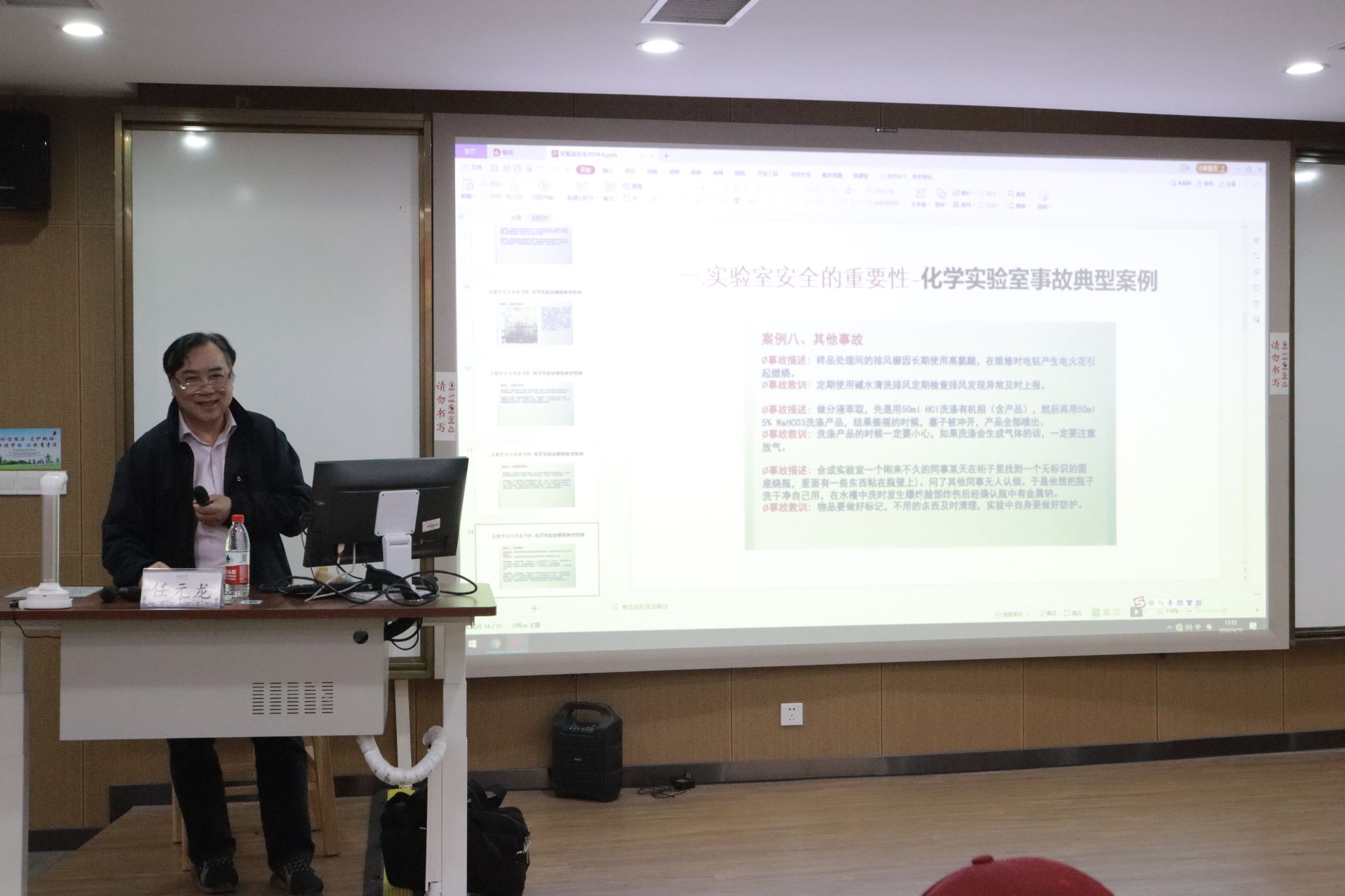 随后,任元龙分析了化学实验室中存在的危险源以及各类事故发生的原因,强调实验室安全管理不应仅仅停留在事故发生后的应对和恢复,更应注重事前的预防和控制,因此需要在平时的实验过程中防微杜渐,注意“小”问题中的“大”隐患。