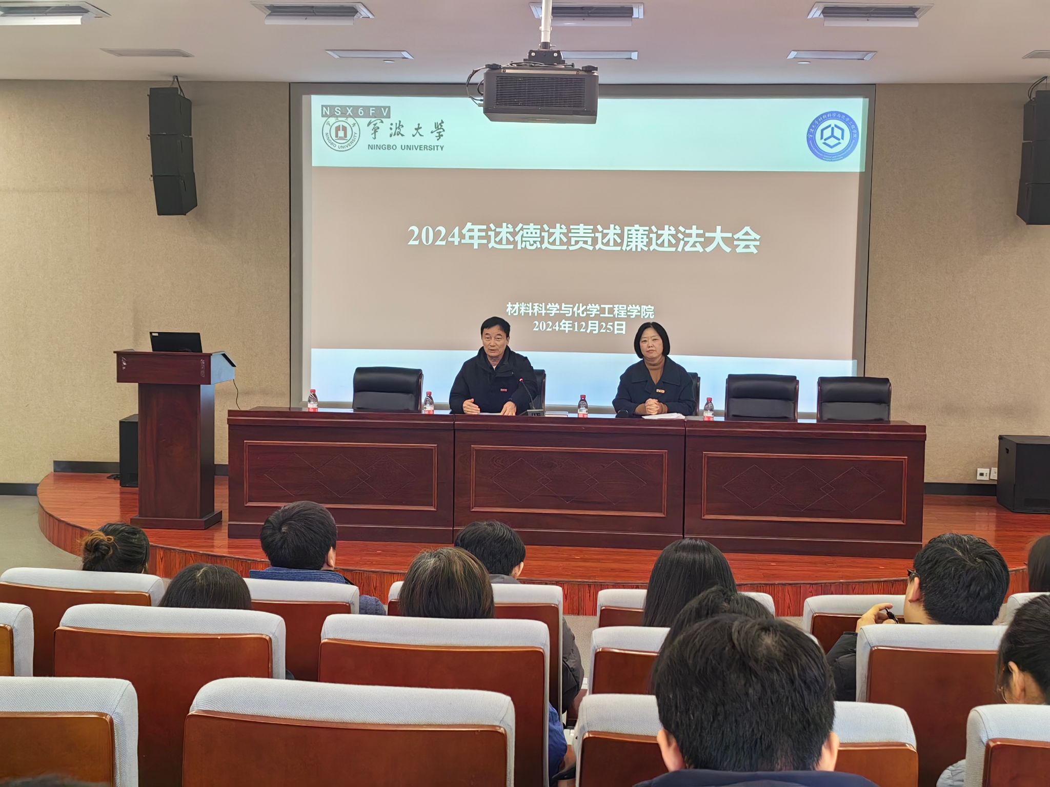 在北区杨咏曼楼二楼会议室召开述德述责述廉述法报告会暨全体教职工大会。会议由院党委书记陶娟主持,学院党政班子、全体教职工参加会议。