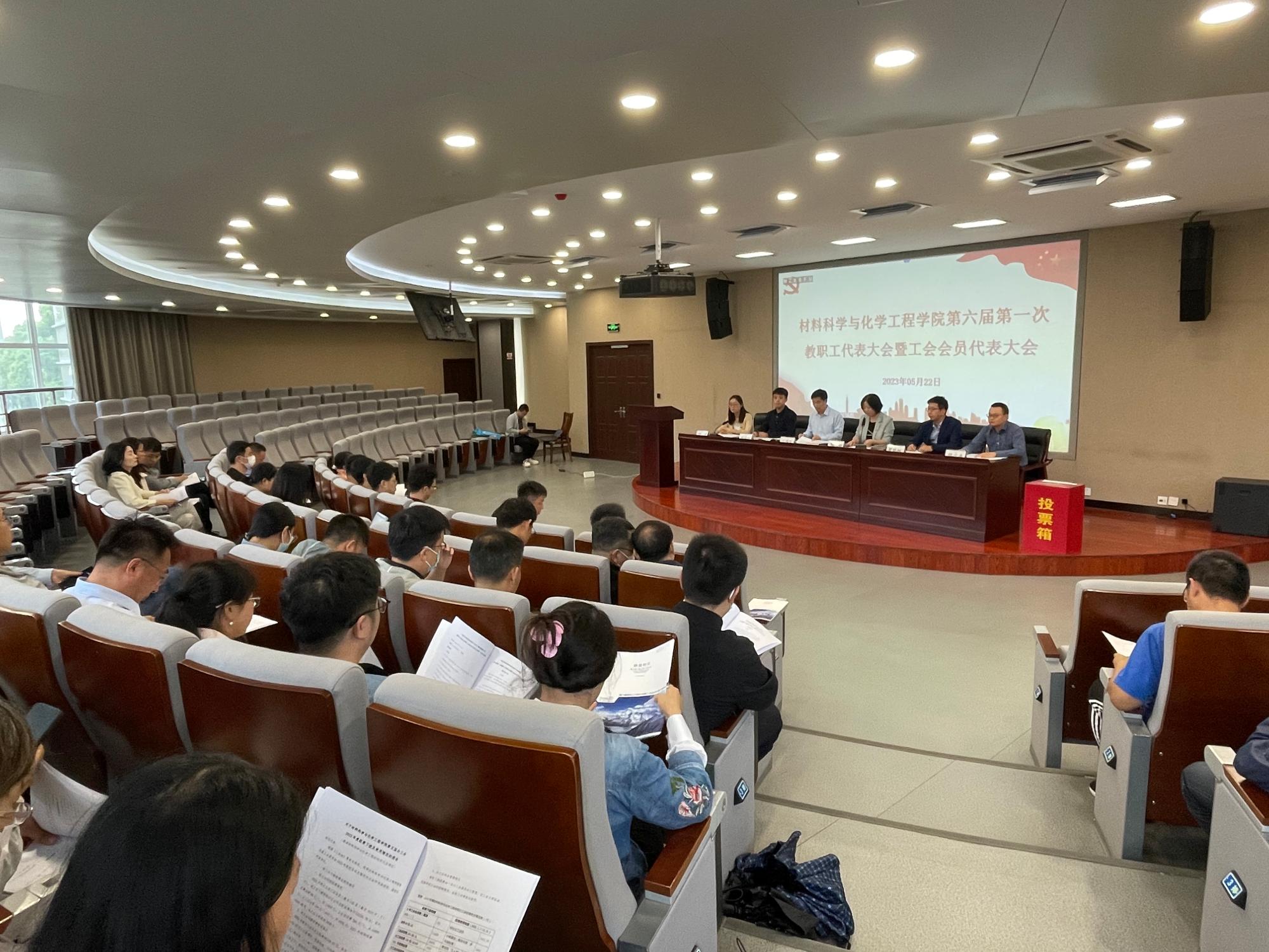 第六届教职工代表大会暨工会会员代表大会第一次会议在北区杨咏曼楼二楼双创会议室召开。会议由学院党委书记陶娟主持,应到会代表人数51名,实到会代表人数46名。