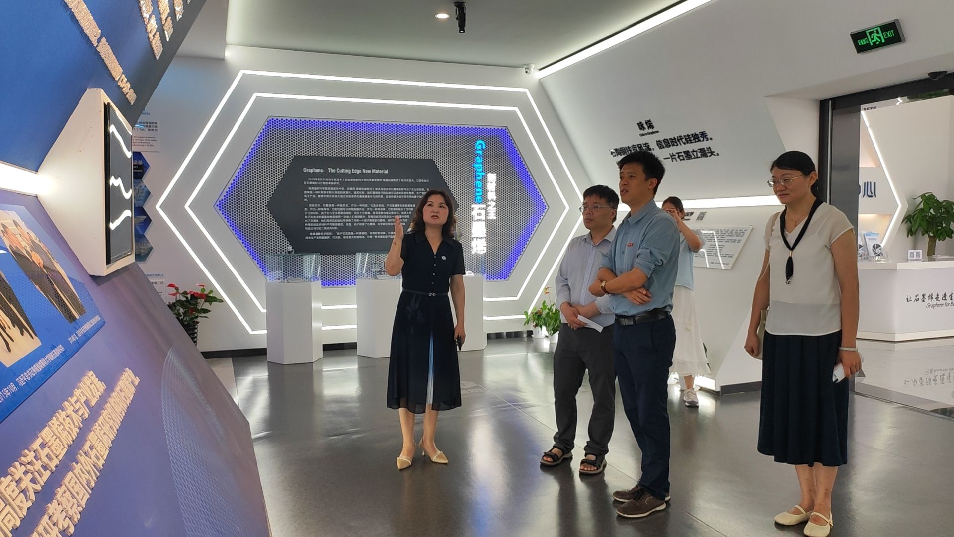 接着,中心的吴丽琼博士陪同来访者参观了石墨烯芯片实验室;徐丹博士带领大家参观了石墨烯展厅。