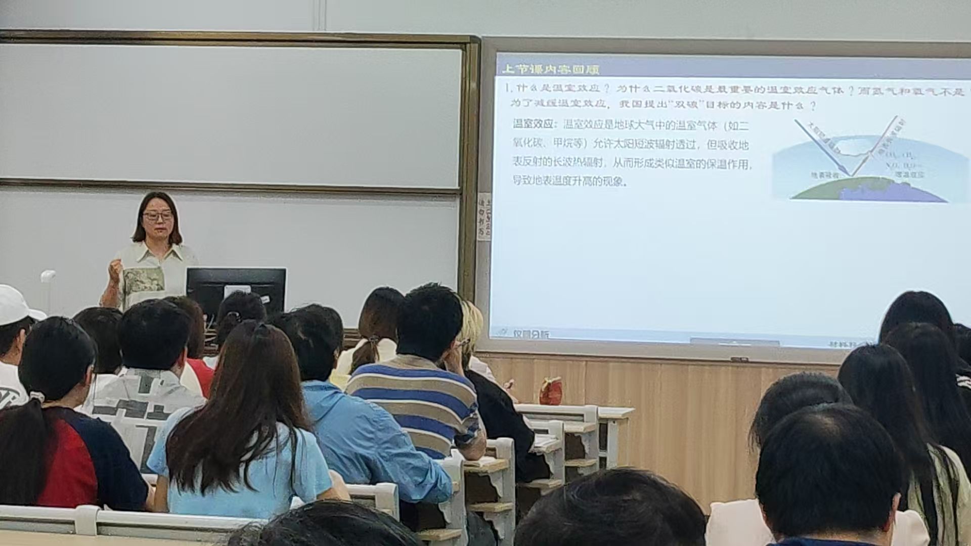 在北3-202教室成功开展"名师晒课"活动,谢洪珍教授主讲的《仪器分析》课程吸引全院30余位教师观摩。教学副院长赵传壮教授主持课后研讨。