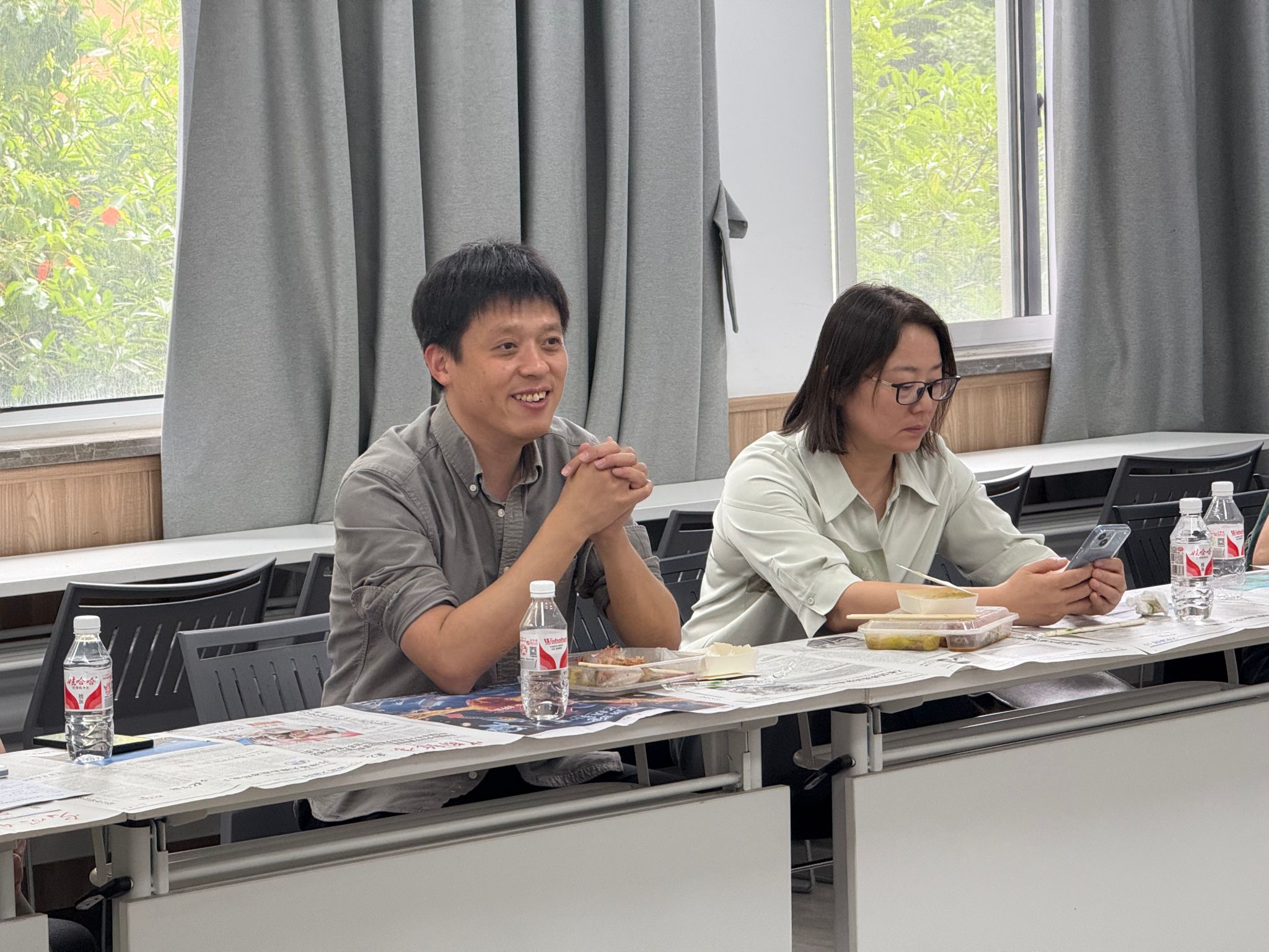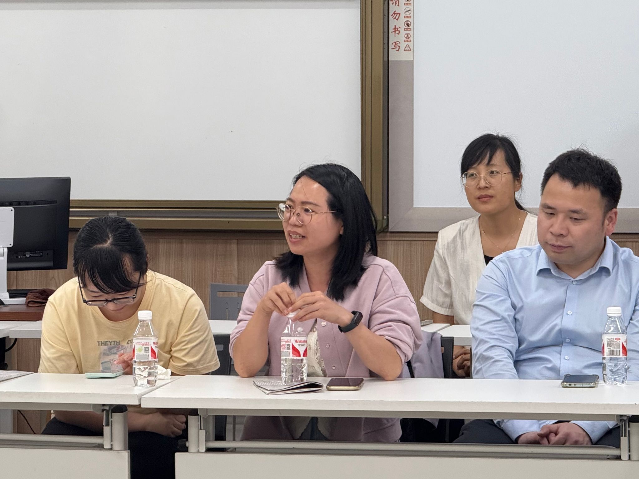 课后研讨中,谢老师分享课程设计思路等教学经验和策略。与会教师在交流听课感受的同时也围绕课堂互动策略、课程思政融入路径等展开热烈讨论。