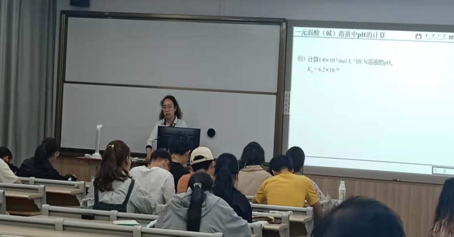朱老师今天主讲的是《分析化学》中的一元弱酸、一元强酸和多元弱酸PH计算。她先复习了酸碱平衡,然后讲解了缓冲溶液计算。课后,督导主任谢洪珍老师主持了教学研讨会,与会老师依次发言。大家都认为朱老师上课准备充分、逻辑性强、重点突出。同时也指出在公示推演和互动方面需要进一步加强。