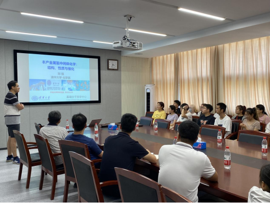 刘强老师作了题为“丰产金属氢中间体化学:结构、性质与催化”的报告,刘老师用精彩的语言、生动的案例、独到的见解,详细介绍了课题组近年来在丰产金属氢中间体化学上的研究进展。其利用强供电子配体提升丰产金属氢中间体的负氢转移活性,并通过在配体上引入活化基团发展协同参与调控模式,从而克服位阻效应。重点介绍通过发展动态配位,氢键协同以及双金属协同三类协同调控模式,实现了对丰产金属钴氢和锰氢中间体活性及选择性的有效调控,建立了高效的丰产金属氢催化体系,并将其成功地应用于偕二烯烃的位点选择性异构化、低碳醇缩合制备长链醇、含氮杂环及亚胺的不对称氢化等重要的催化转化反应。学院师生对精彩的报告反响热烈,227会议室内座无虚席,报告后的提问交流环节气氛热烈。