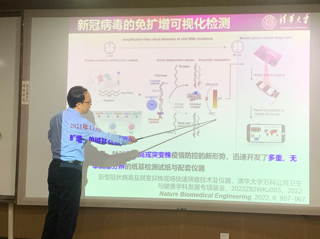李景虹院士以非典、新冠病毒、猴痘病毒等引发的重大突发公共卫生事件为背景,详细介绍了其课题组在针对突发传染病病原体的前瞻性、及时性的化学测量学研究以及为疫情防控和科学进步所作出的贡献。李院士认为,化学测量学在应对重大突发公共卫生事件的过程中发挥着关键作用。其课题组针对奥密克戎突变株疫情防控的新形势,迅速开发了多重、无扩增、单碱基分辨的纸基检测试纸与配套仪器,可以在无核酸扩增的情况下,检测灵敏度高达400 copies/sample,在助力疾病诊断、疫苗研发与药物筛选等方面具有重要意义。