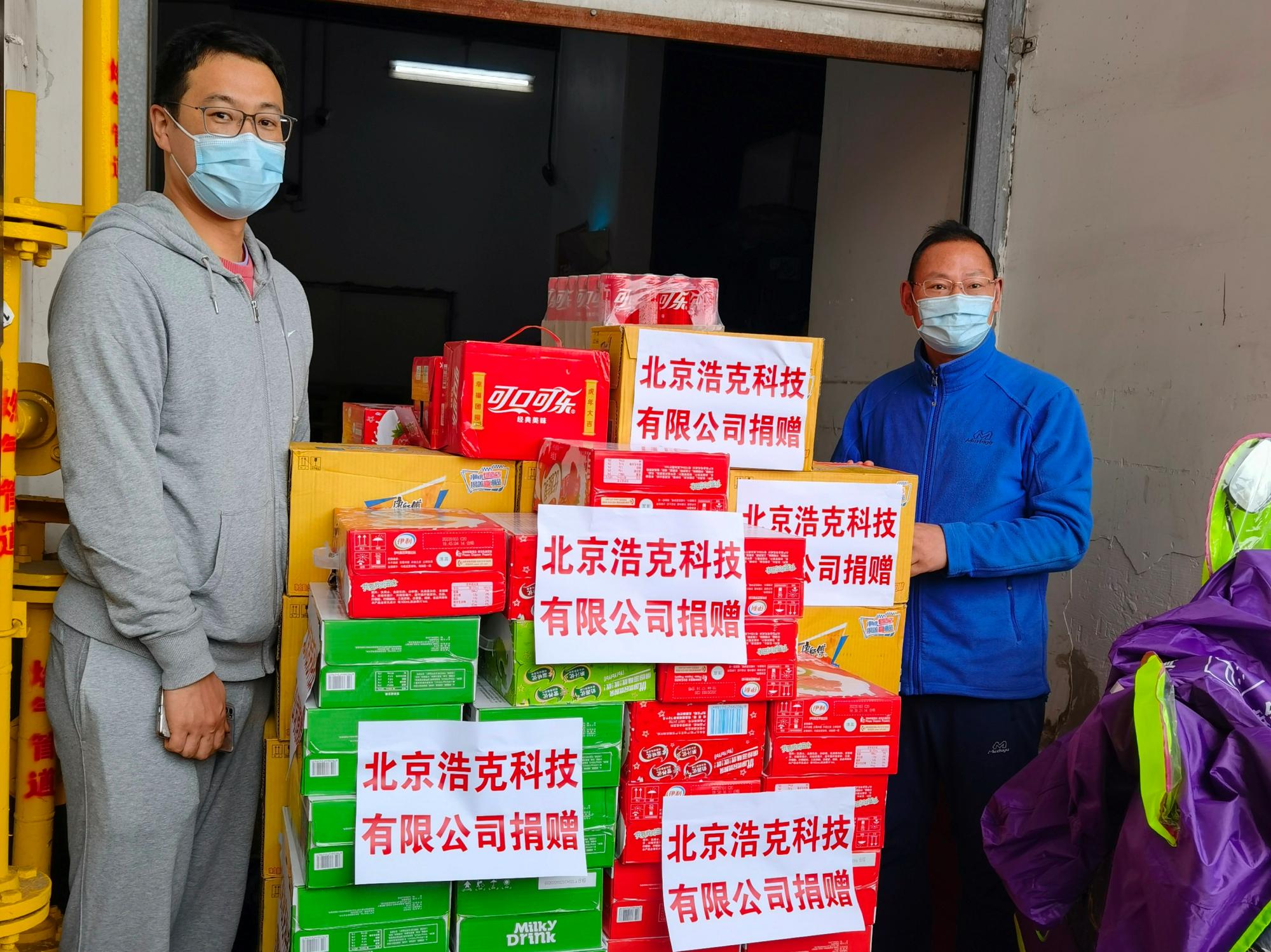 学校疫情防控工作不仅牵动了宁波的广大校友和企业,远在北京的北京浩克科技有限公司在看到宁大疫情防控的新闻后,主动联系学院老师,表示捐赠意愿。4月14日上午,该公司委托学院孙志刚老师捐赠1200份水果、酸奶、饮品,共计1万元的物资顺利送到北区学生二村门口。学院党委书记罗云杰代表学院接收了物资,并向企业表达了学院的感谢,随后罗云杰带领10余名校外教师志愿者将一车物资搬运到学生宿舍区。