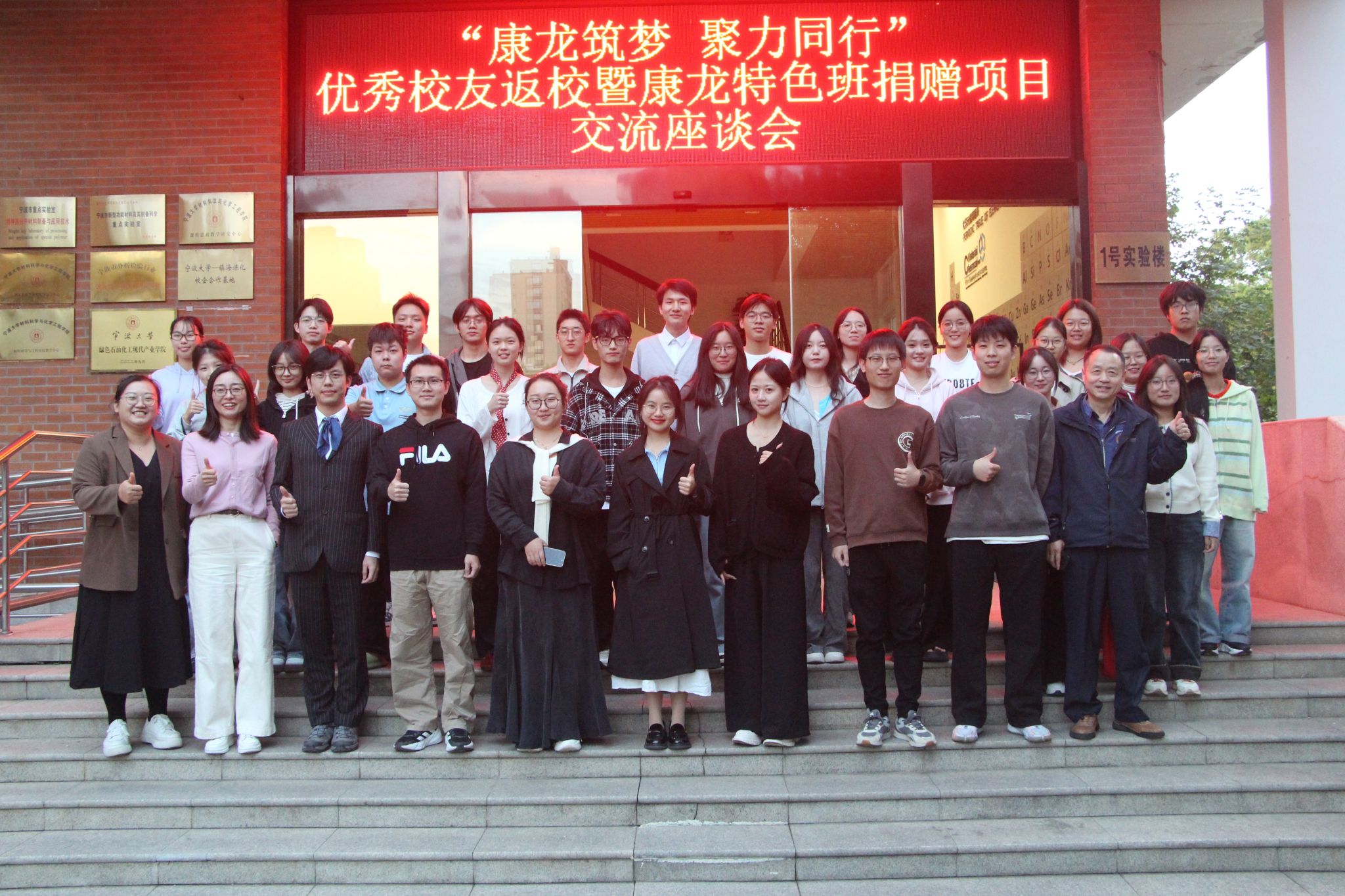 此次座谈会在温馨愉快的合影留念中圆满落幕。本次活动不仅搭建了校友与母校、在校生之间情感联络与经验交流的坚实桥梁,更极大地激发了“康龙特色班”在读学生的专业认同感和学习积极性,为学院人才培养工作的高质量发展注入了新的活力。