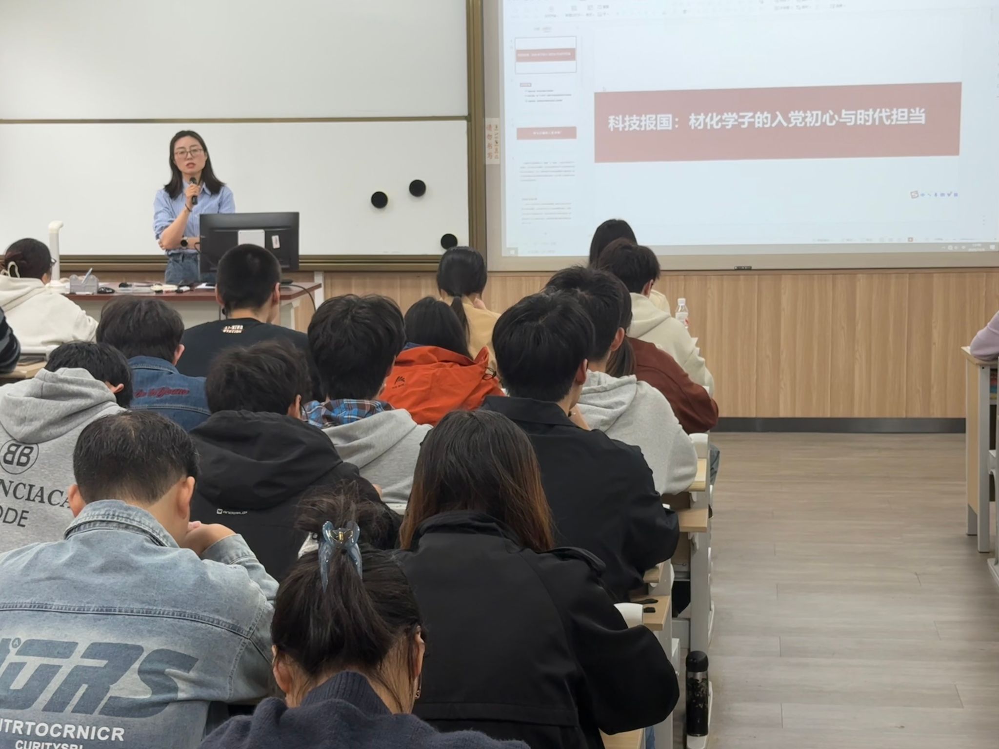 仪式后,尹慧以“科技报国:材化学子的入党初心与时代担当”为主题,为学员们讲授了第一堂党课,引导大家深刻思考入党动机,在“十五五”新征程中找准青春坐标,践行专业报国的使命担当。