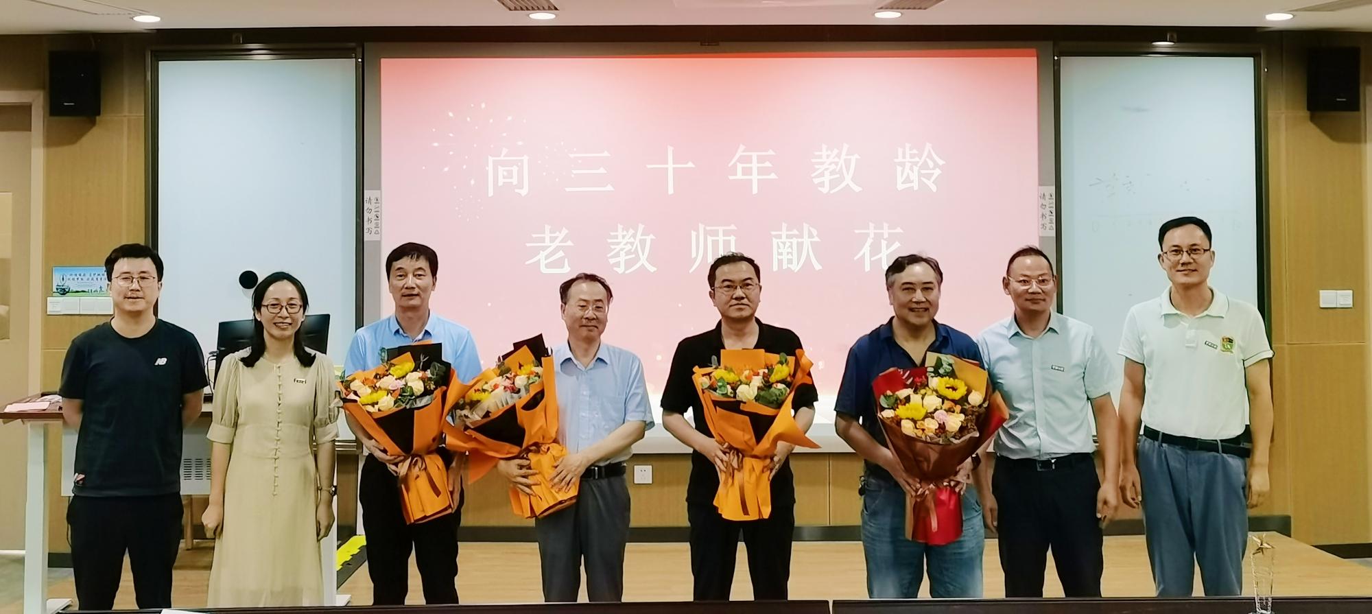 之后,院领导向学院三十年教龄老教师献花,代表学院为他们三十载的春华秋实与桃李芬芳表示祝贺与感激,同时也鼓励更多老师们在教育岗位上坚持与奉献,为新一代大学生们培根铸魂。