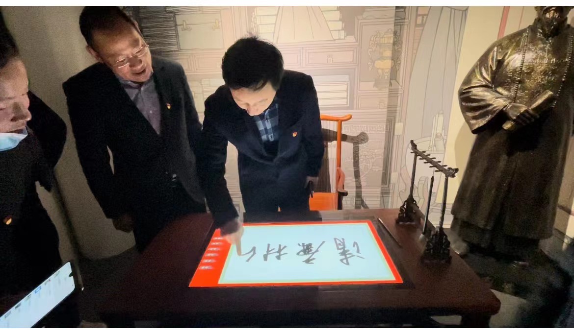 在各类廉政文化史料、图片、典故前,党员同志们纷纷驻足,相互交流,一起感悟,一起思考,展厅中的“清风拂四明”引起了大家的共鸣,党员们认为,这些悠久的本土家风家训很接地气,从这些优秀的家规家训中涉取到了“清廉”的正能量。 学院特聘院长丁传凡在电子书写屏上写下“清廉材化”四个大字,表示学院将一直以旗帜鲜明的实际行动立“清明政风”。