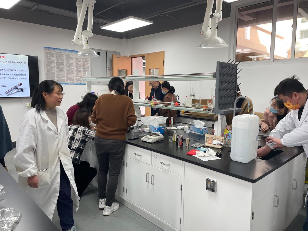 首先,学院实验室人员为参加人员详细讲述了本次口红制作活动的注意事项,并当场演示实验步骤。随后,参加人员按照分组在每日大赛