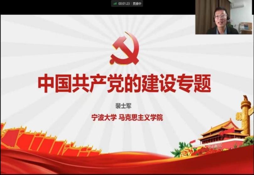 院党委委员韩鸿儒以党的建设为切入点,由点到面,重点介绍党的发展历程以及社会主义制度在中国的确立。他希望全体学员认识到只有共产党才能救中国,只有社会主义才能救中国。要通过不断学习党的相关知识,提高自身的思想文化水平,成为敢想敢为又善作善成的新时代青年,为中华民族伟大复兴贡献自身力量。
