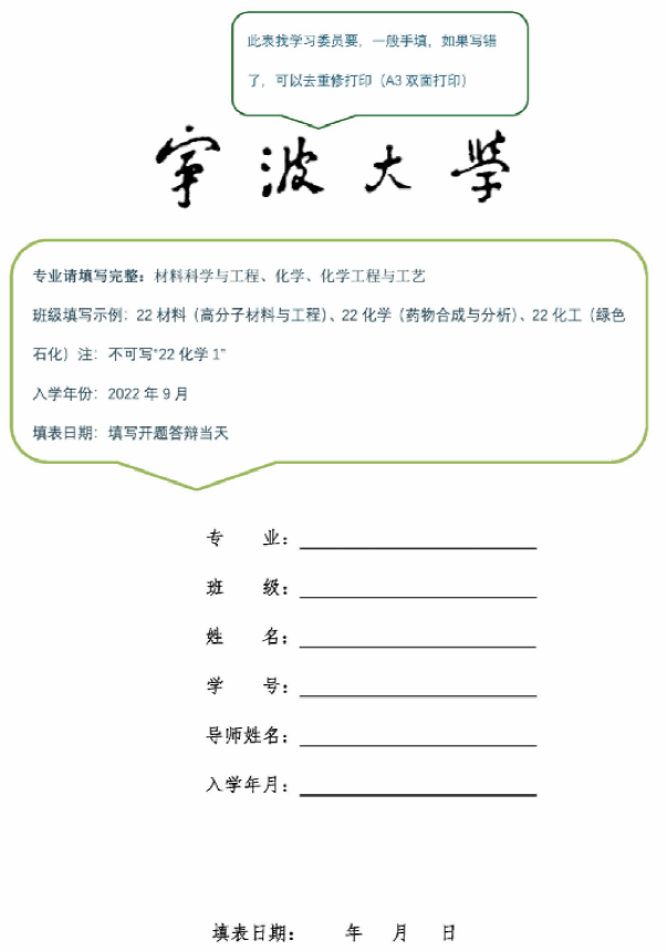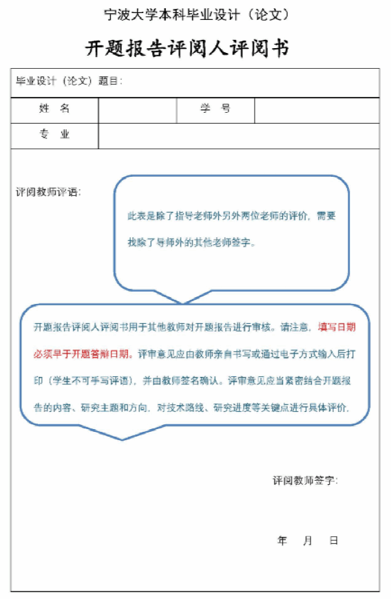①《开题报告评阅书》和《开题报告评阅人评阅书》需在答辩前完成填写并请相应老师签字(日期应为答辩日期之前)。